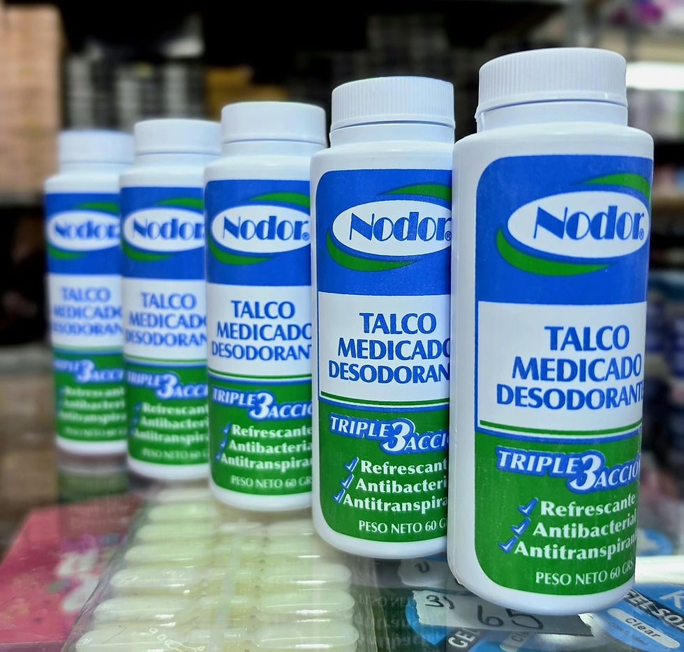 Talco Nodor triple acción, refrescante, antibacterial, antitranspirante